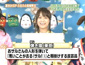 ふるさと自慢祭りということで、えりりんは東京の『弾き猿』という民芸品を紹介。