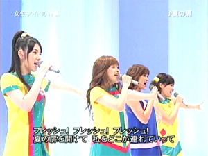 この曲では新田恵利、中島美春、福永恵規、内海和子がフロントをつとめていましたが