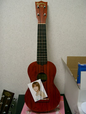 これは僕が最初に買ったウクレレ「Famous / FU-150」です。…何かカードが挟まってますけど(笑)